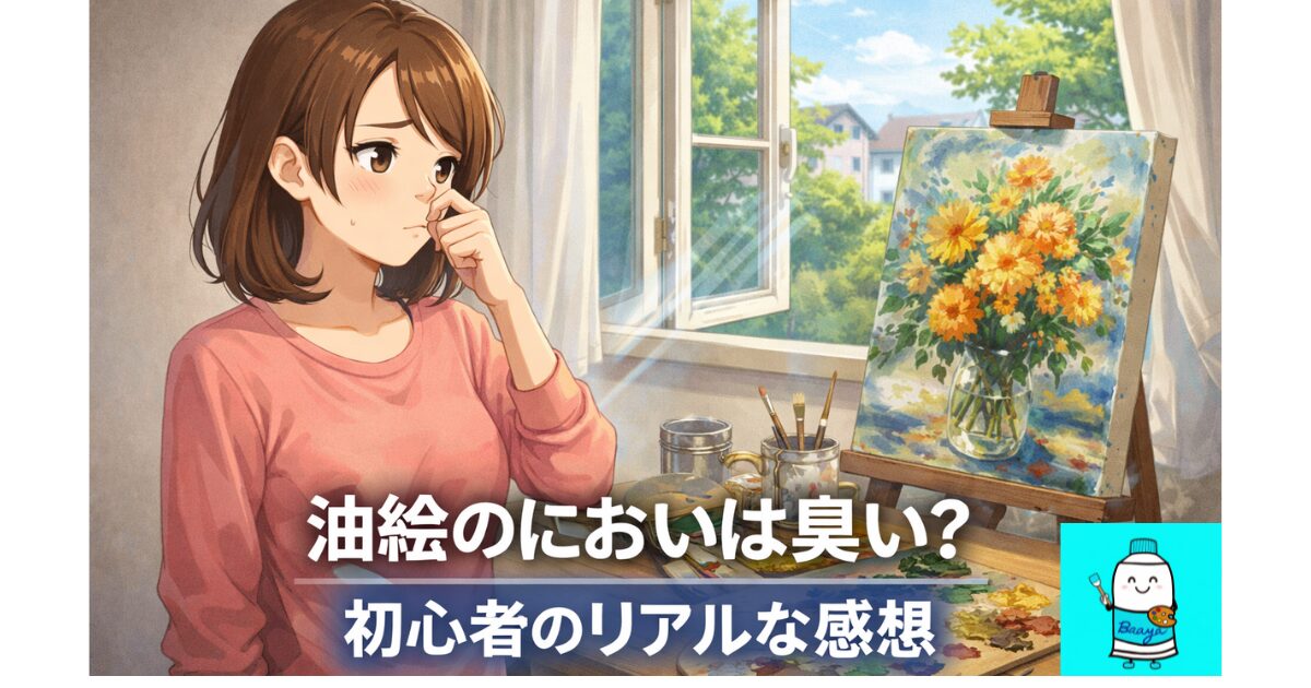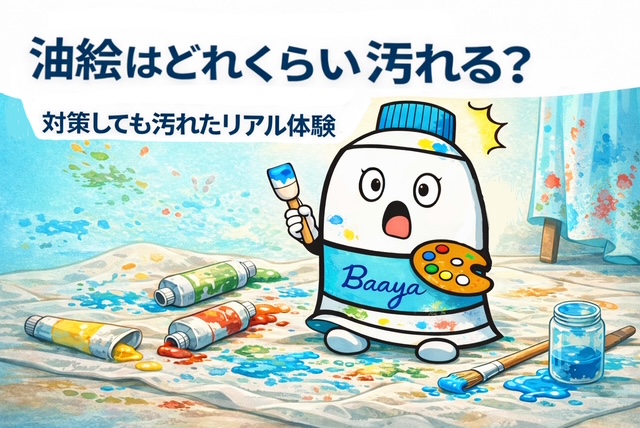 【初心者向け】デッサンの形の取り方|○△□でシンプルにとらえる方法 2026.04.06 描き方 enogubaaya えのぐばあや 左右対称がうまく描けない人へ|歪みを防ぐ6つのコツと練習法【初心者向け】 2026.04.05 描き方 enogubaaya えのぐばあや 油絵の細筆0号を3種類購入|フラット・フィルバート・ラウンドの違い 2026.04.04 道具 enogubaaya えのぐばあや 油絵の具で汚れた服・カーテン・ラグは落ちる?洗ってみた結果と落とし方 2026.03.29 よくある疑問 enogubaaya えのぐばあや 油絵はどれくらい汚れる?対策しても汚れたリアル体験【初心者の失敗談】 2026.03.29 よくある疑問 enogubaaya えのぐばあや 油絵初心者が自宅の部屋で描くための環境づくり|道具と汚れ対策まとめ 2026.03.28 道具 enogubaaya えのぐばあや 油絵|乾いていない作品の持ち帰り方【キャンバスクリップの使い方も解説】 2026.03.26 道具 enogubaaya えのぐばあや 油絵のにおいは臭い?初心者が感じたリアルな匂いと対策 2026.03.26 よくある疑問 enogubaaya えのぐばあや 油絵 三原色だけで12色作れる?|実際にやってみた(初心者向け) 2026.03.22 描き方 enogubaaya えのぐばあや 油絵 黒の絵の具は使わない?|混色で作る自然な黒の作り方(初心者向け) 2026.03.20 描き方 enogubaaya えのぐばあや もっと見る
