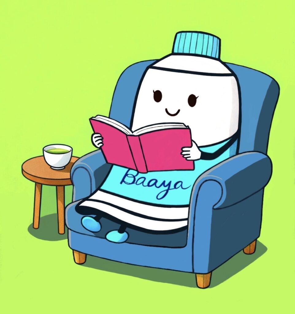 えのぐばあやがお茶を飲みながら読書しているところです。