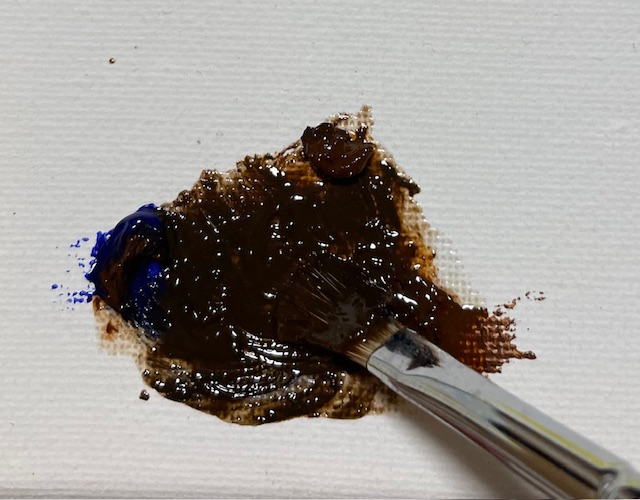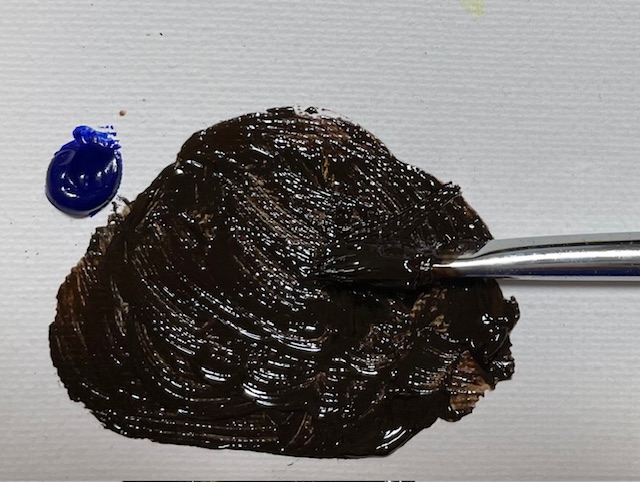 👉 紺色(ウルトラマリン)+こげ茶(バーントシェンナ)を混ぜて黒を作る