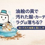 油絵の具で服・カーテン・ラグを汚してしまった実体験をもとに、